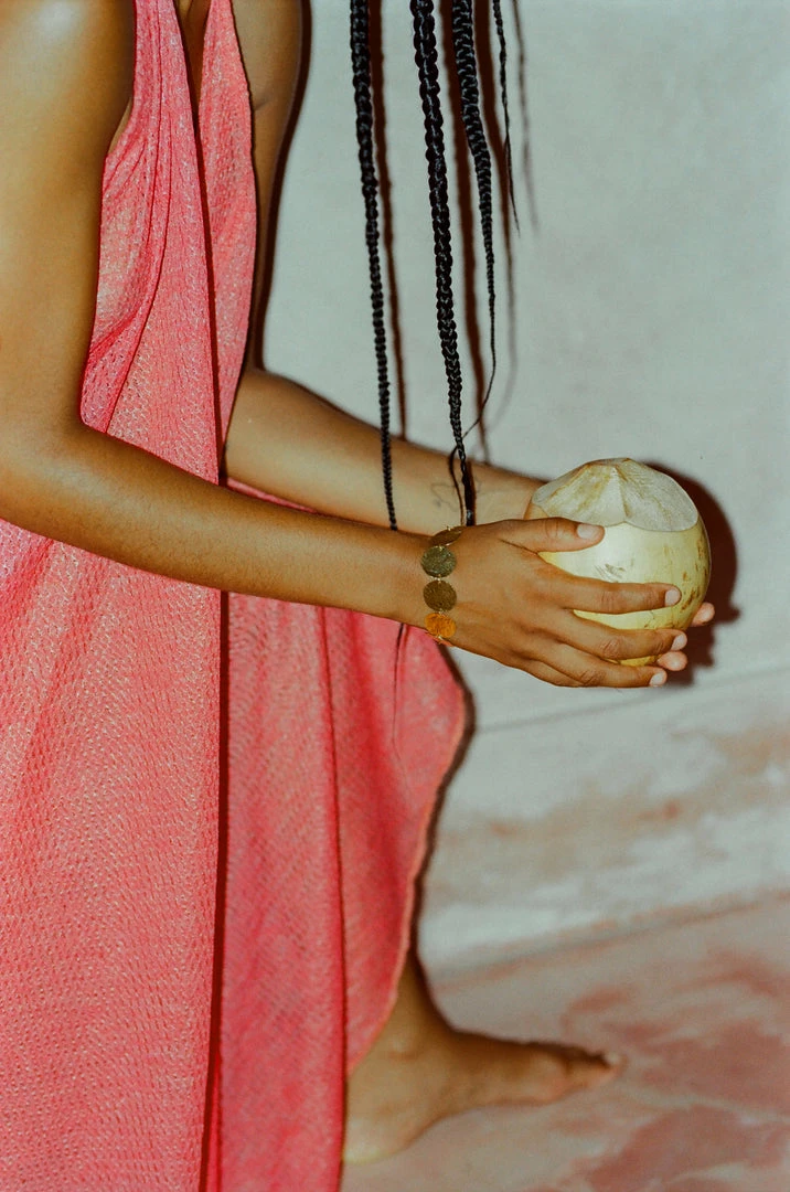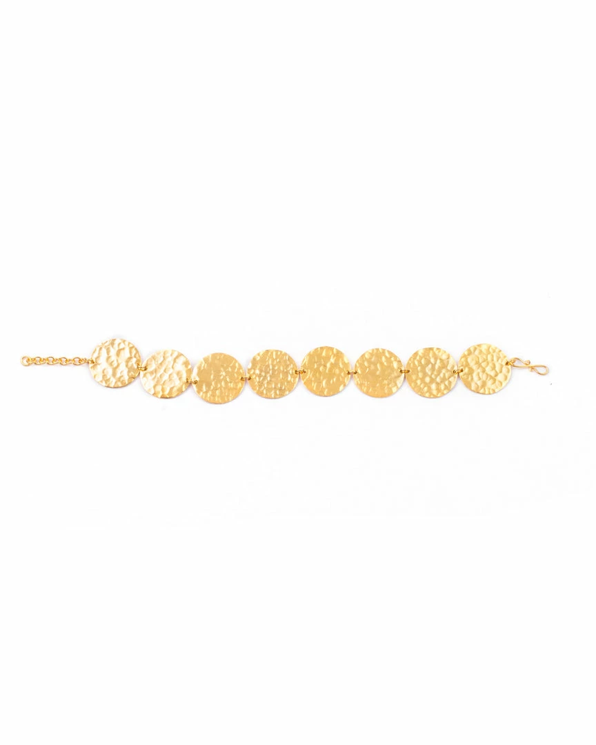 Handcutted gold platted coin shape 70’s style Bracelet perfect to wear in your everyday looks.