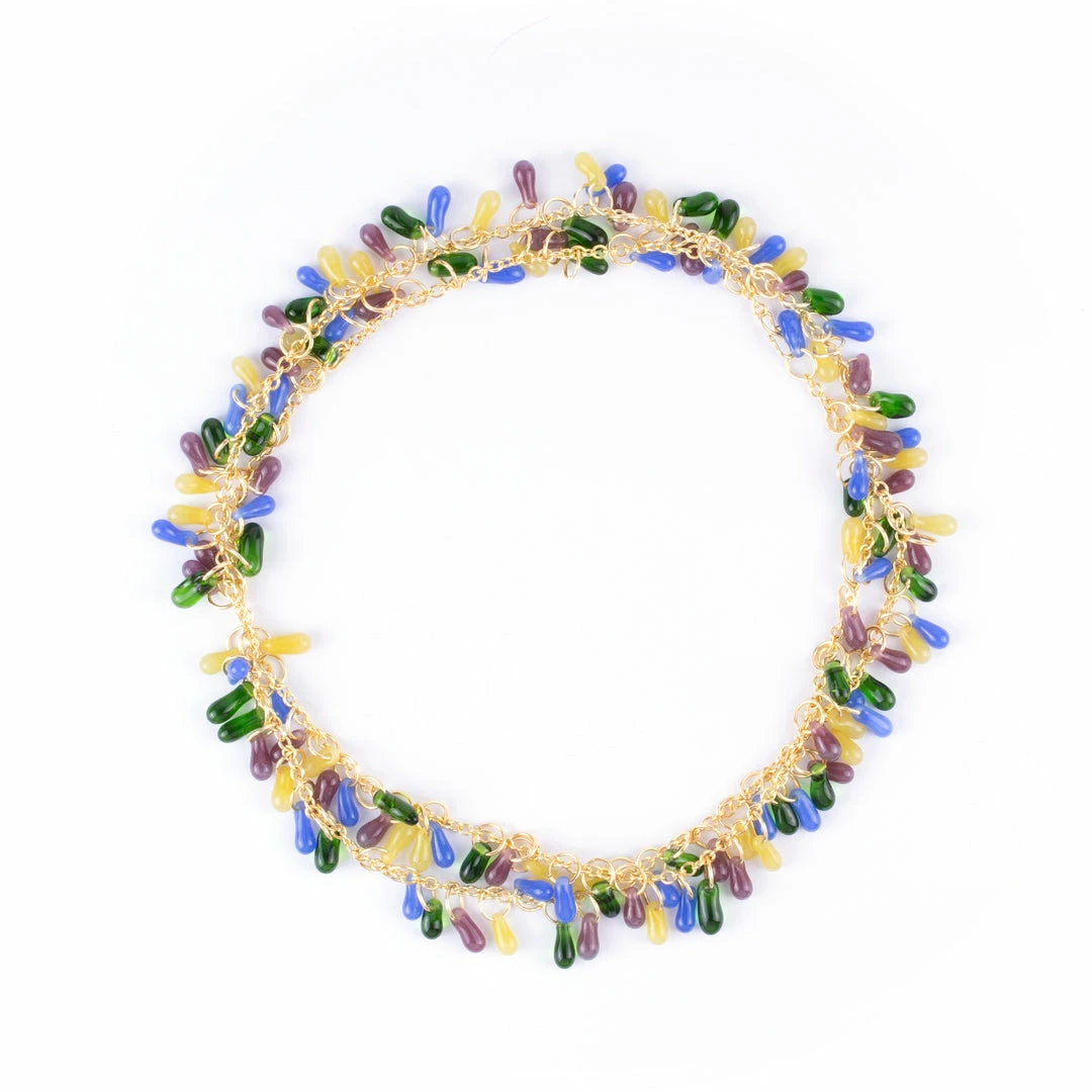 Crystal stones necklace. Use it in many different ways, around your neck, long, short, crossed around your waist… Each design is made individually, so colors may slightly vary.