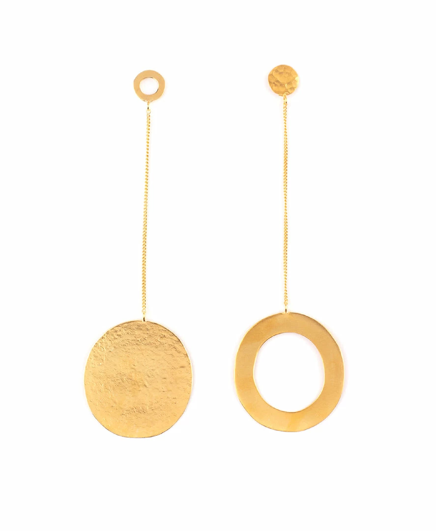 The OO earrings draw inspiration from the moon. Their stunning circle draws inspiration from the stunning shape of the full moon. Use these pieces to add a unique flair to any everyday fit. For a more unique aesthetic, only wear the OO earring on one ear.