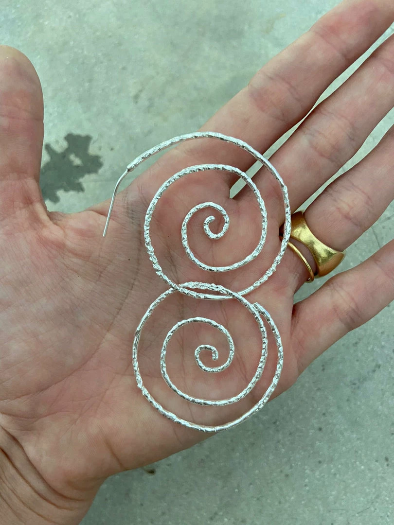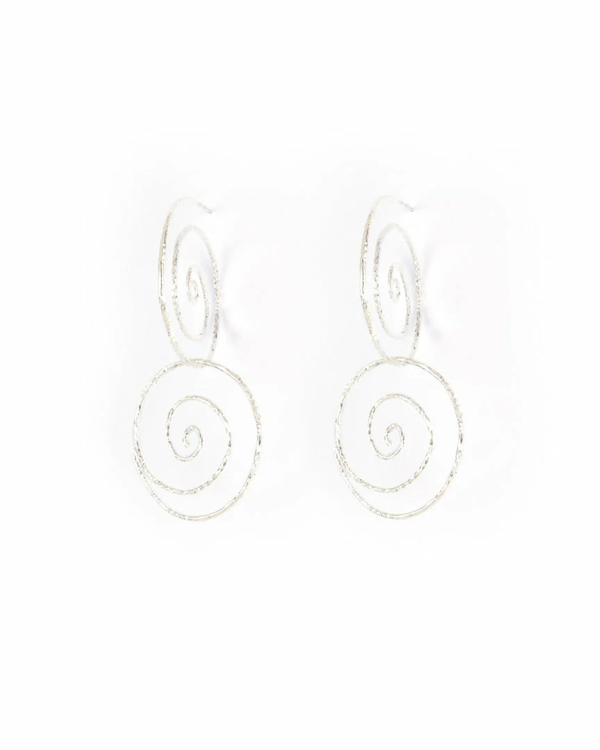 Coming from our favorite Spiral Necklace. Double handcrafted spirals conneceted between each other inspired by the diversity of life and destiny. Sterling Silver earrings that swings with every move. Perfect for all your night out outfits.