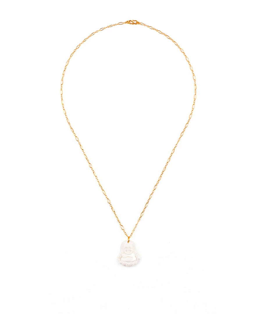The Buddha necklace symbolizes wisdom. It highlights an authentic Malaysian resin Buddha figure collected from a Buddhist temple. We had every piece blessed in temple ceremony to embrace positive energy.