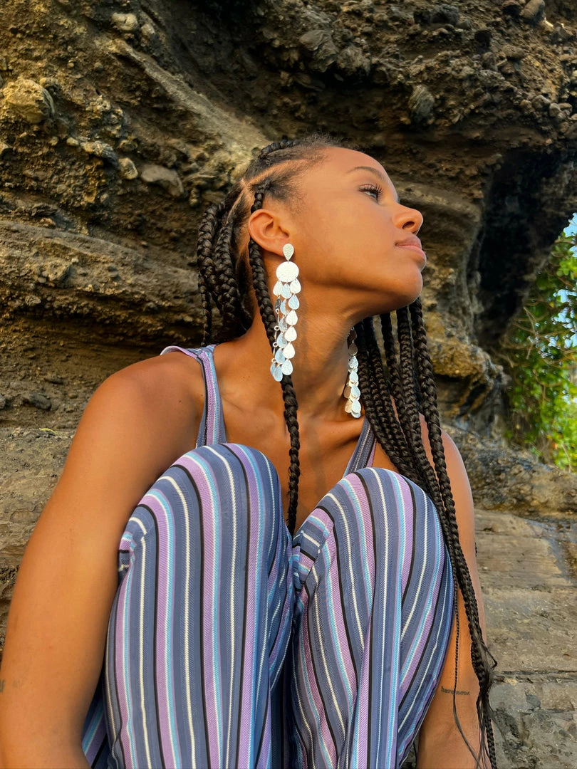 Hand crafted drop shapes coming in Silver Platted. Statement earrings ready for the nights you will spend on the dancefloor. Long and light earrings that will swing along with every move.