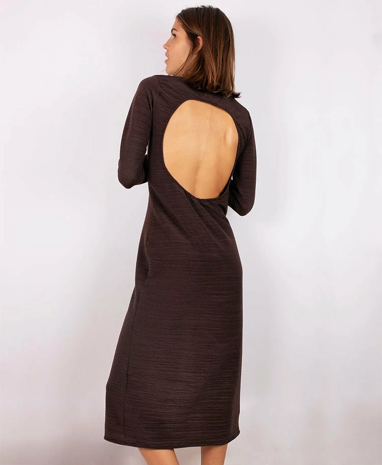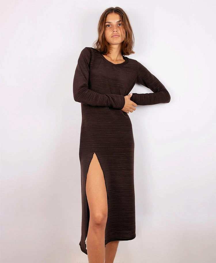 Long Dress made of ribbed cotton with leg cut detail and open back. Perfect for your everyday look to combine with your favourite boots or for a casual night wearing heels, spice it up! Comfortable and easy to rock. Ribbed Cotton Dress. Adapts to all different body shapes.