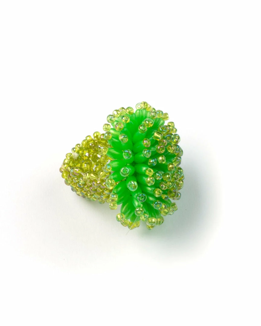 Let your quirky side shine with our anemona rings. These handmade pieces consist of colored beads arranged to create flower-like jewellery. Choose from shades of red, yellow, green, blue, and black.