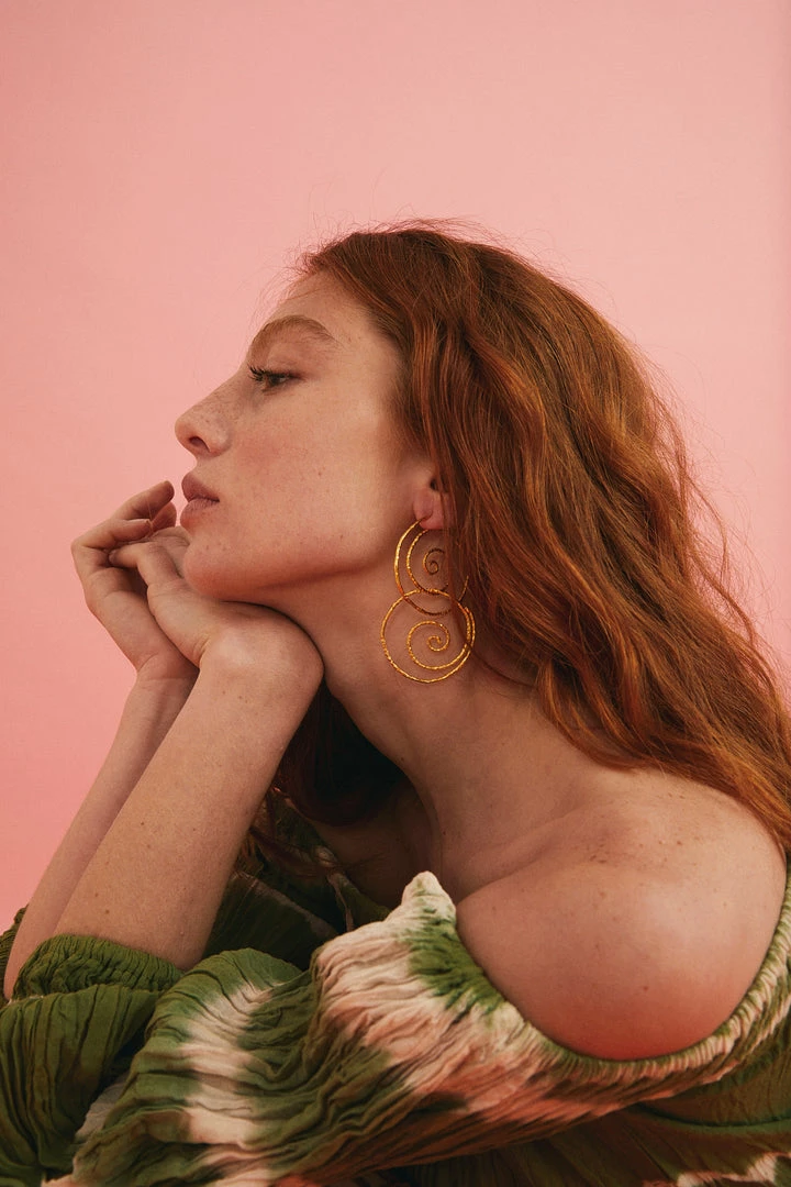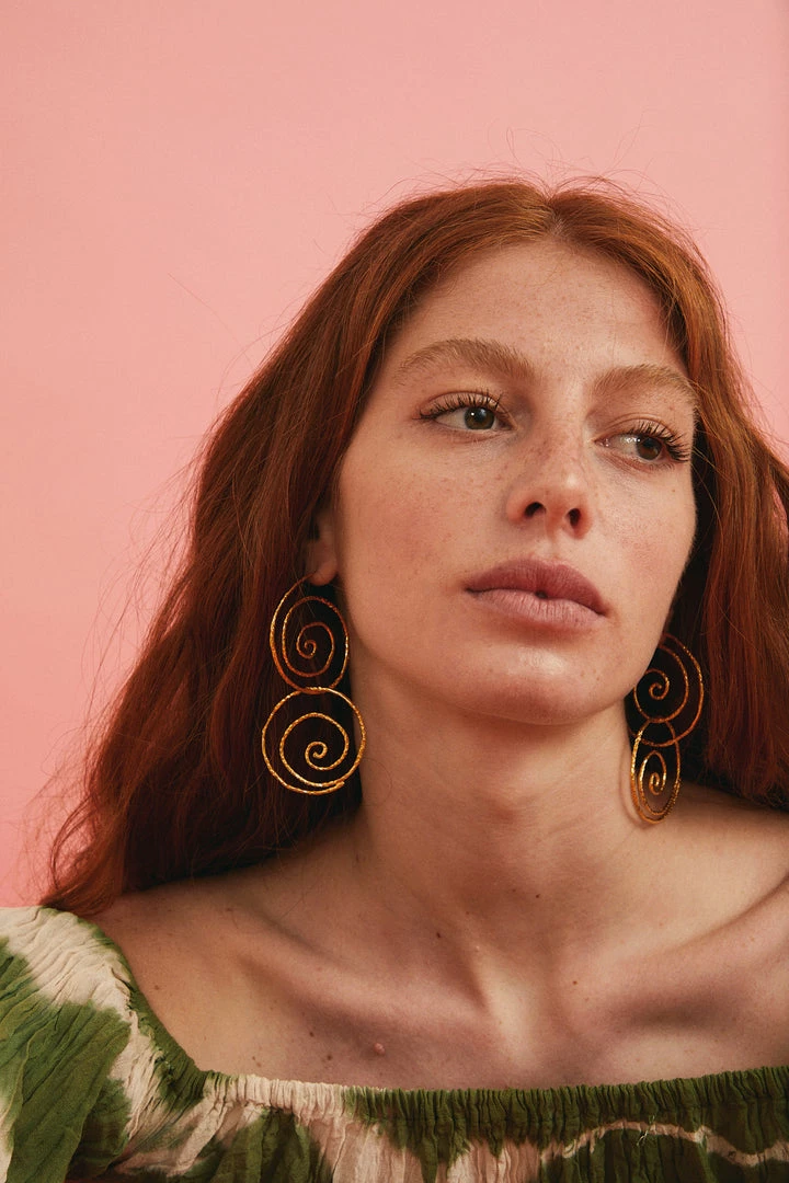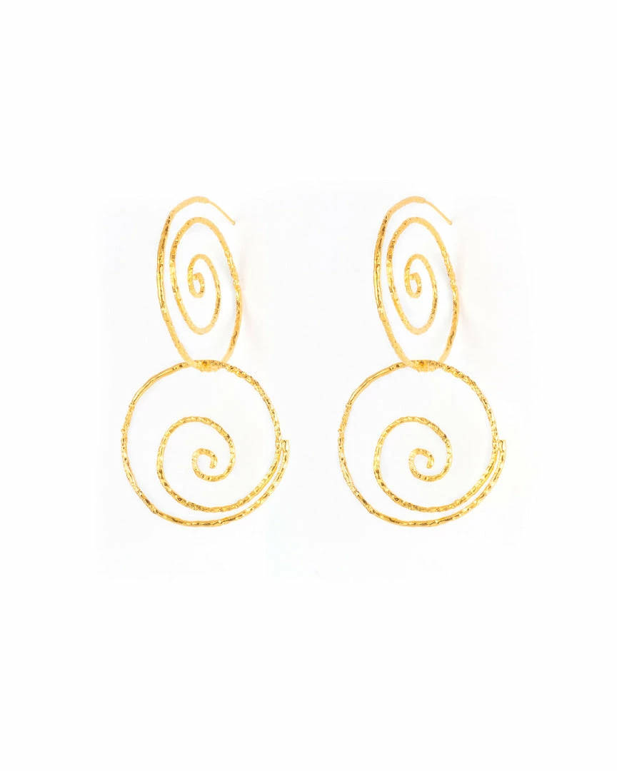 Coming from our favorite Spiral Necklace. Double handcrafted spirals conneceted between each other inspired by the diversity of life and destiny. Golden platted earrings that swings with every move. Perfect for all your night out outfits.
