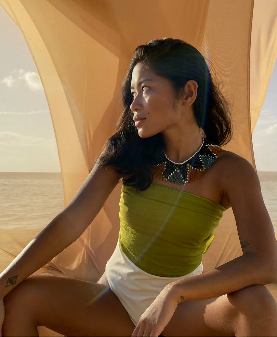 The Jungle necklace takes inspiration from traditional Indonesian collars. Natives often use these for ceremonial dances. These pieces come from local artisans residing in a small town north of Bali. Also, the design on the Jungle necklace goes beyond aesthetics. This serves as our interpretation of the warm, relaxing tropic jungle life.
