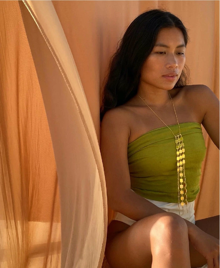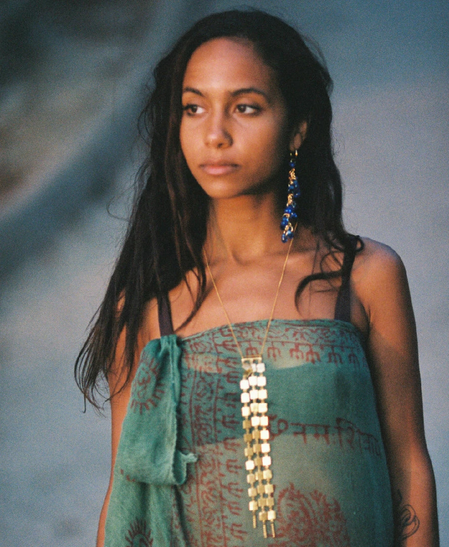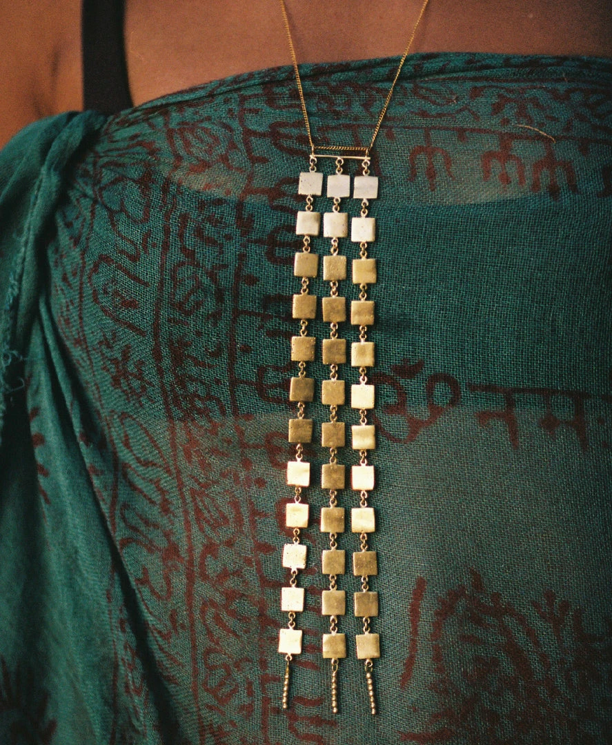 Add a bohemian sparkle to any everyday getup! Our best-selling Kalo necklace takes inspiration from the warm summer breeze of Ibiza. It features individual hand-cut, gold-plated cubes studded on a brilliant chain.