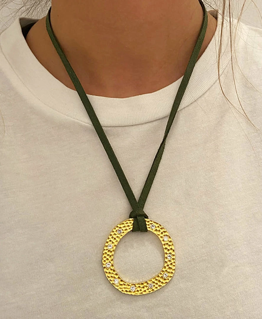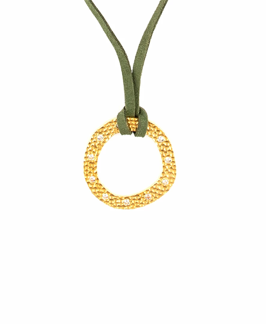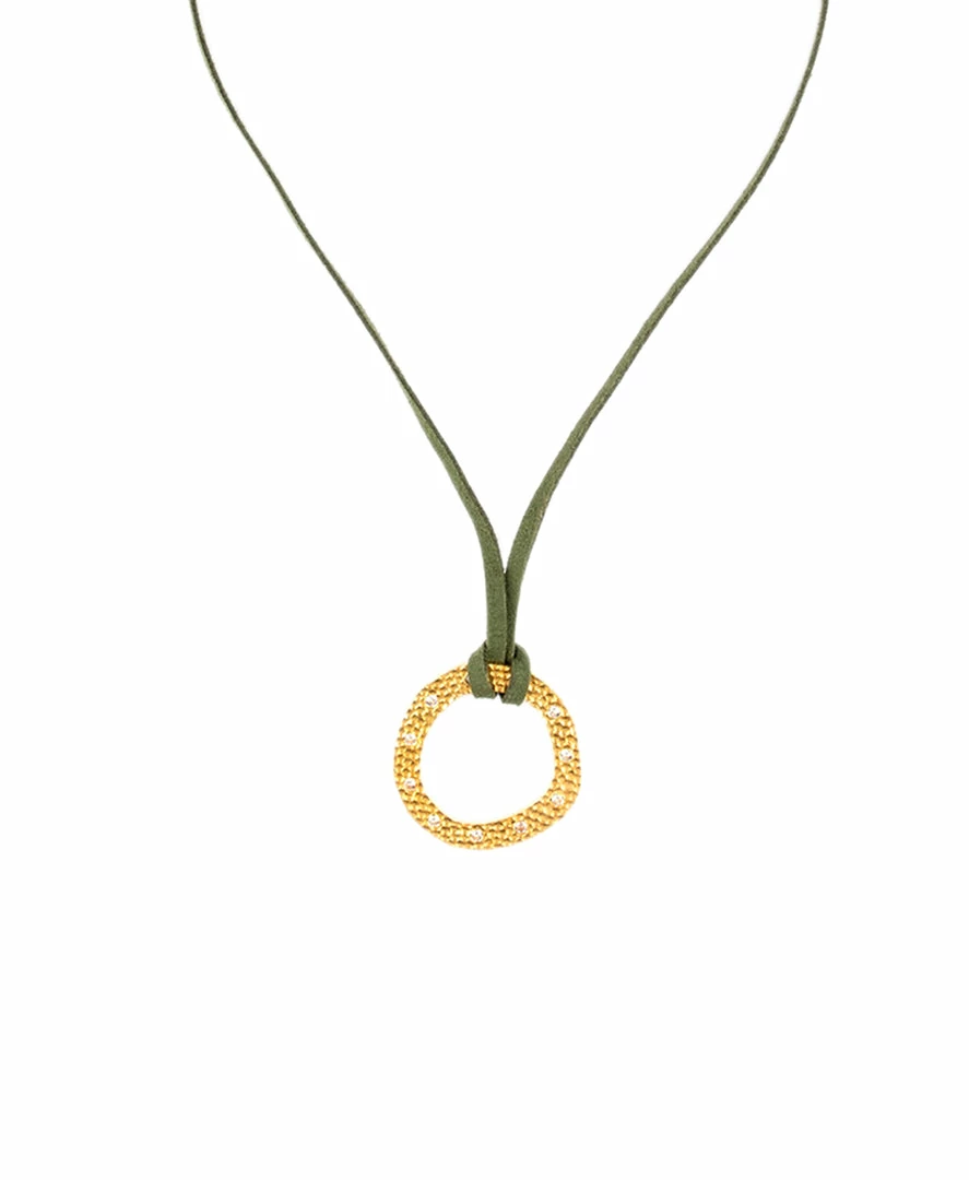 The circle of life Necklace with crystal stones around combined with our newest colorful leather chain. Pink and Green. Love and Nature. Choose your favorite and rock it with your everyday looks or in your night looks.