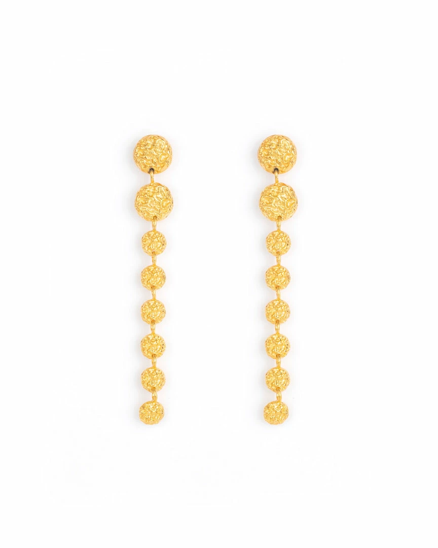 The Luna Earrings were inspired by the moon phases and the rocky tides of the island life. Long and bright statement earrings will make you shine all summer long.