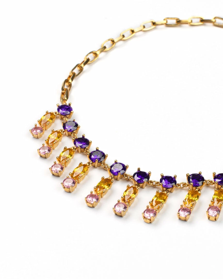 Bling in our Manuela Chocker, every piece was handcrafted curating all the details from the chain to each piece around the Bali colorful stones. This statement necklace goes along every night and day look to bright up and give that touch of elegance but funkiness at the same time. It’s a favorite.