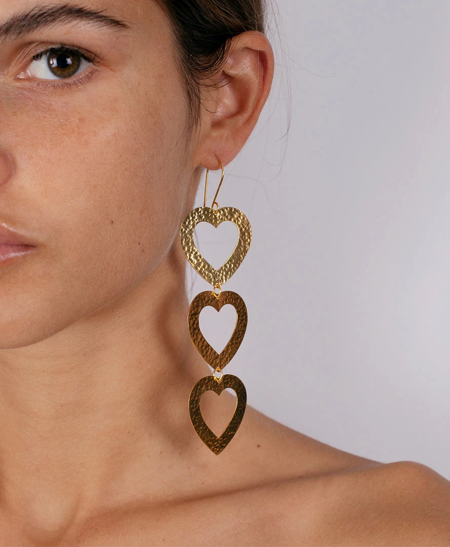 Complete your sultry look with our stunning heart-shaped dangling earrings. These lightweight beauties will make you feel all loved up and are ideal for layering with any of our other pieces.