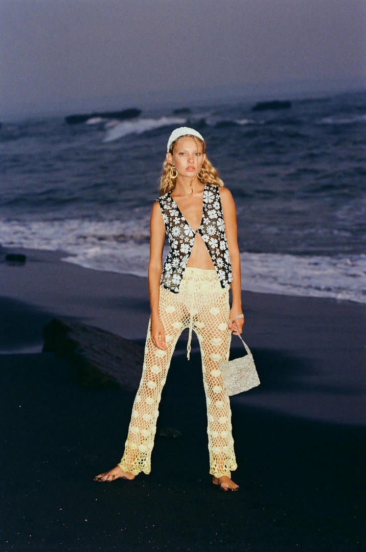 Hand crafted crochet pants to give the mermaid style to your summer looks. Streatchy and comfy pants with adjustable waist strap. Limited quantities available. Style with Lolita top for the perfect look.